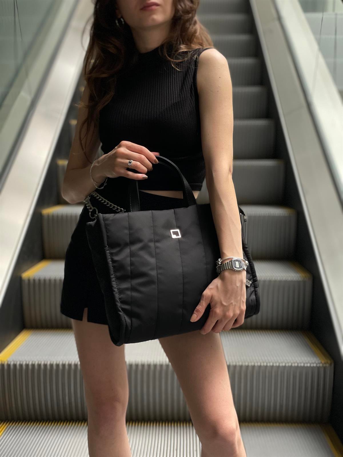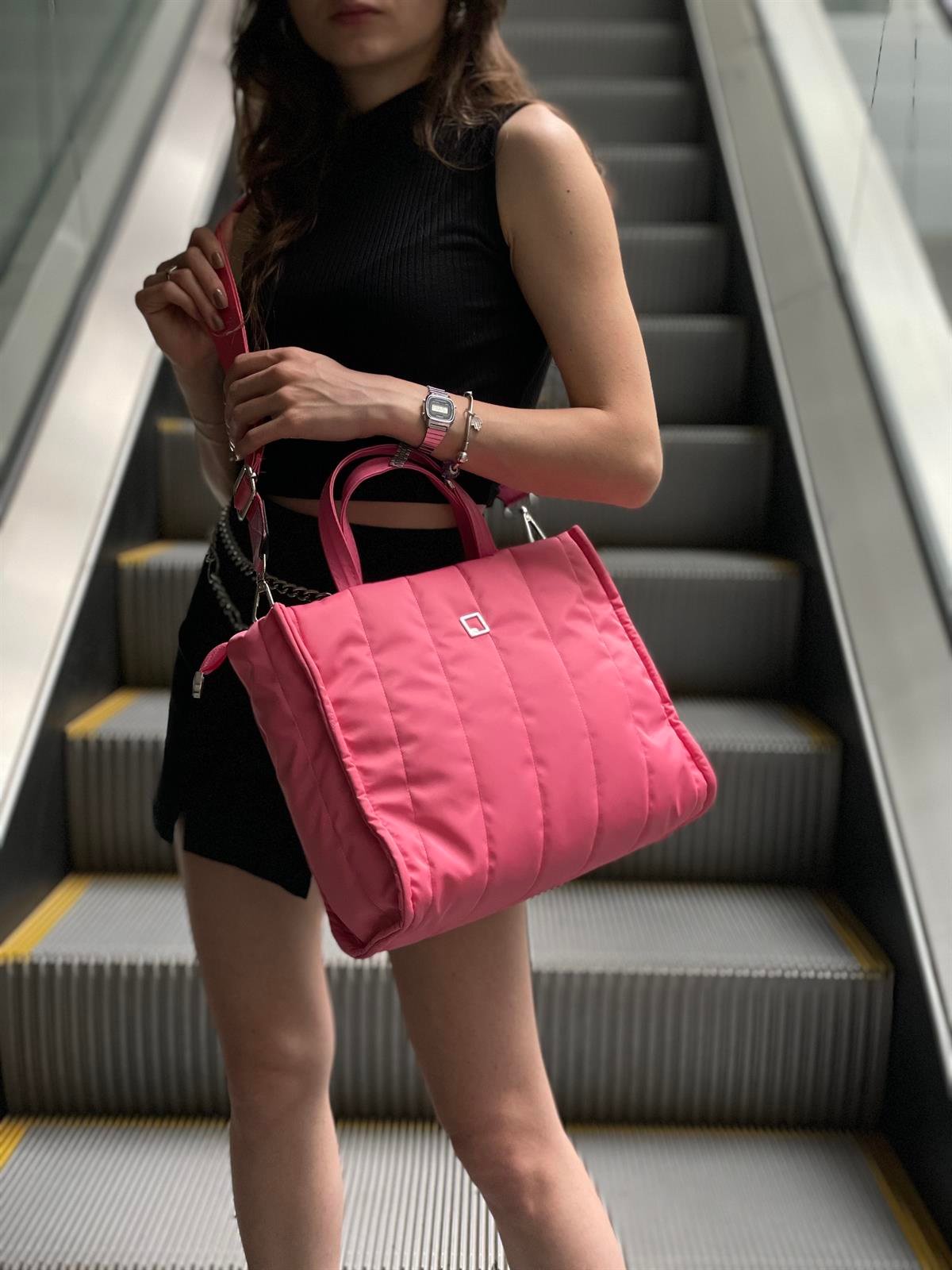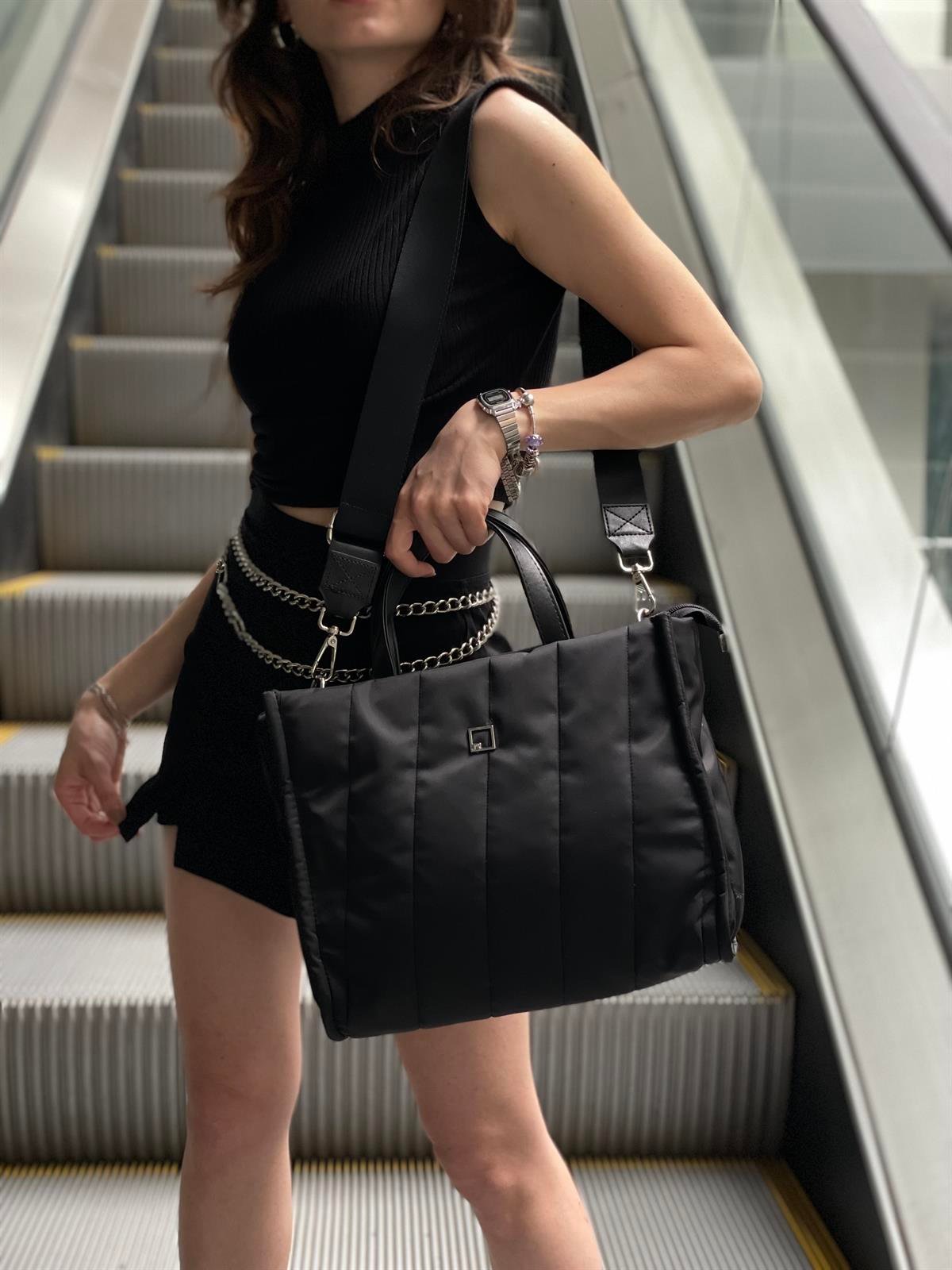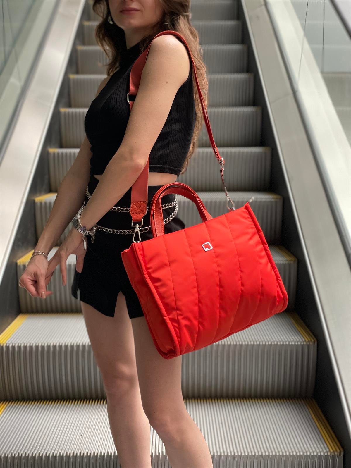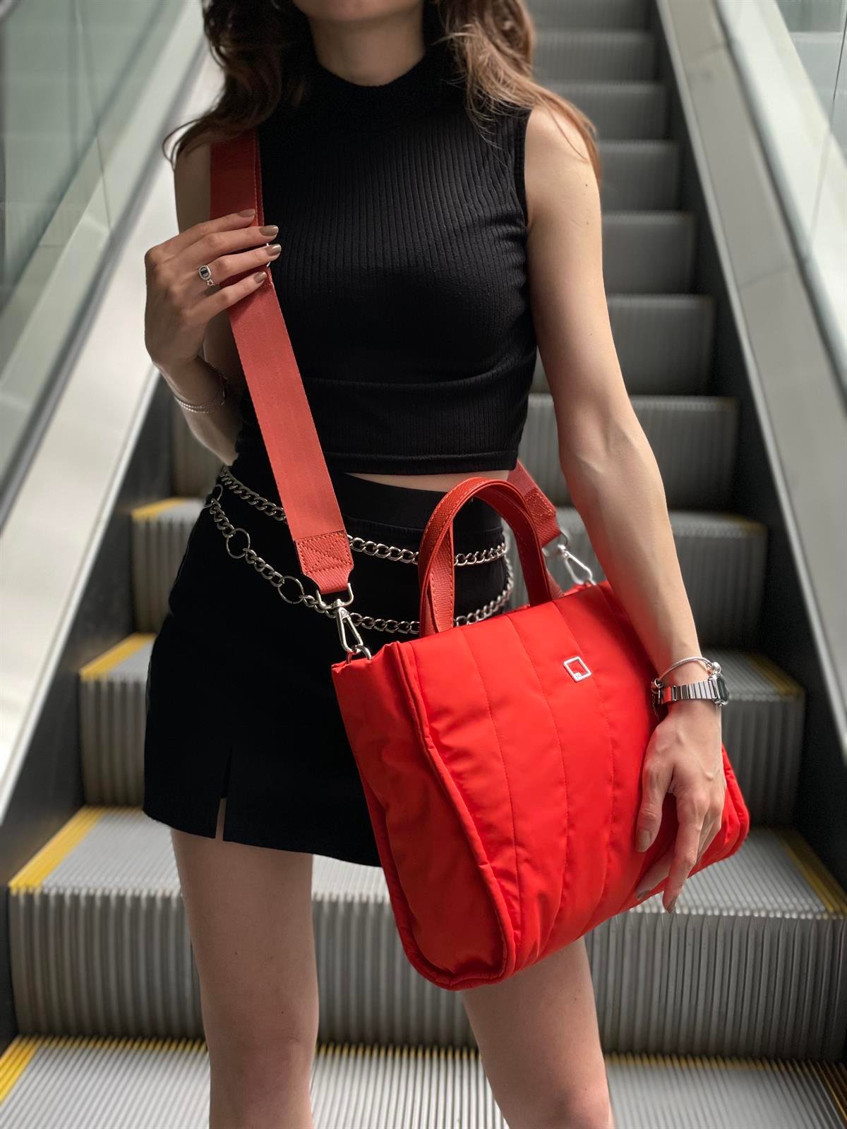 Hem el çantası hem de uzun askısıyla çapraz ve omuz çantası olarak kullanılabilir