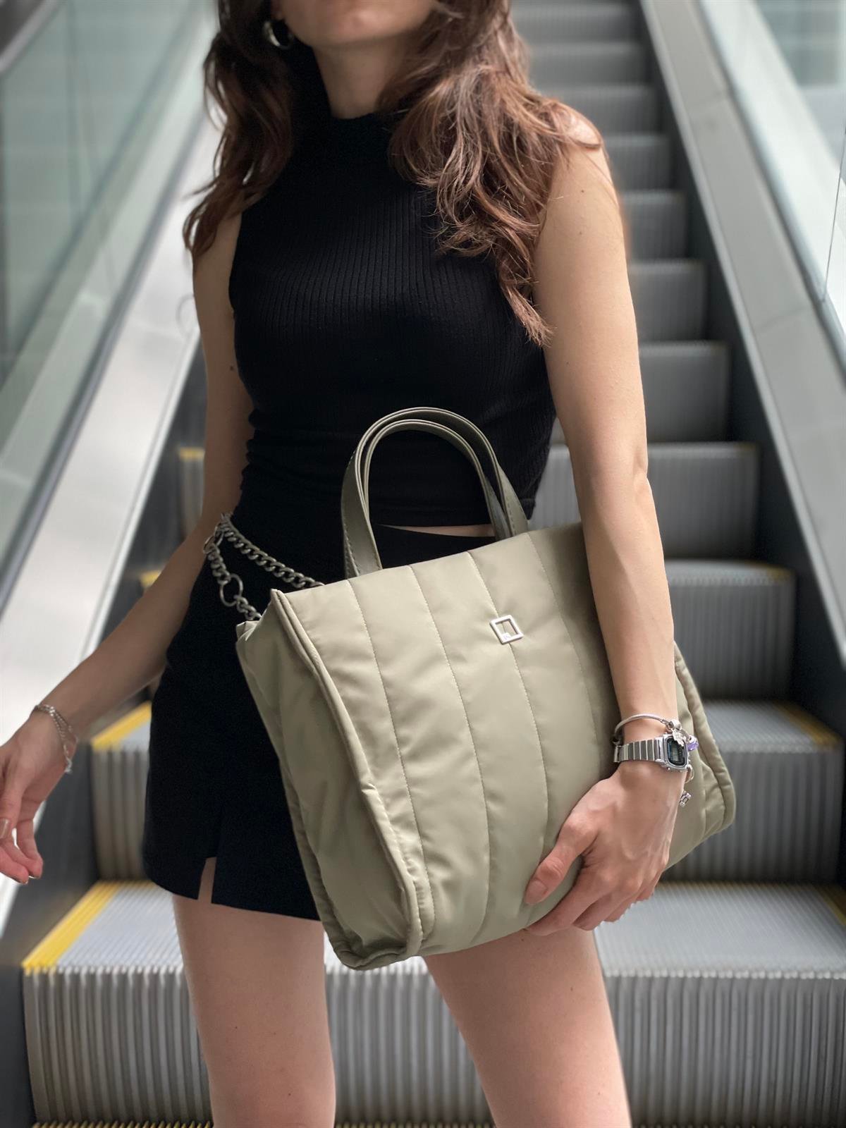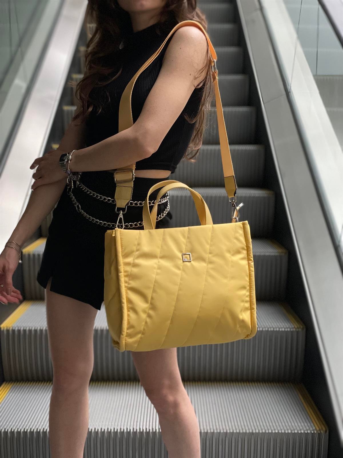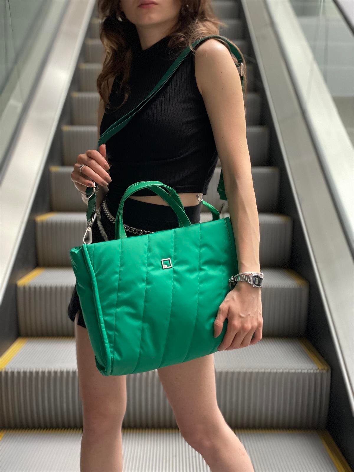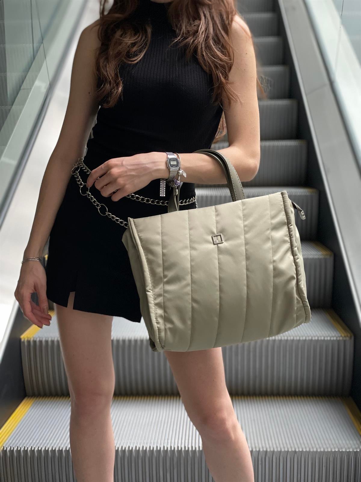 Hem el çantası hem de uzun askısıyla çapraz ve omuz çantası olarak kullanılabilir