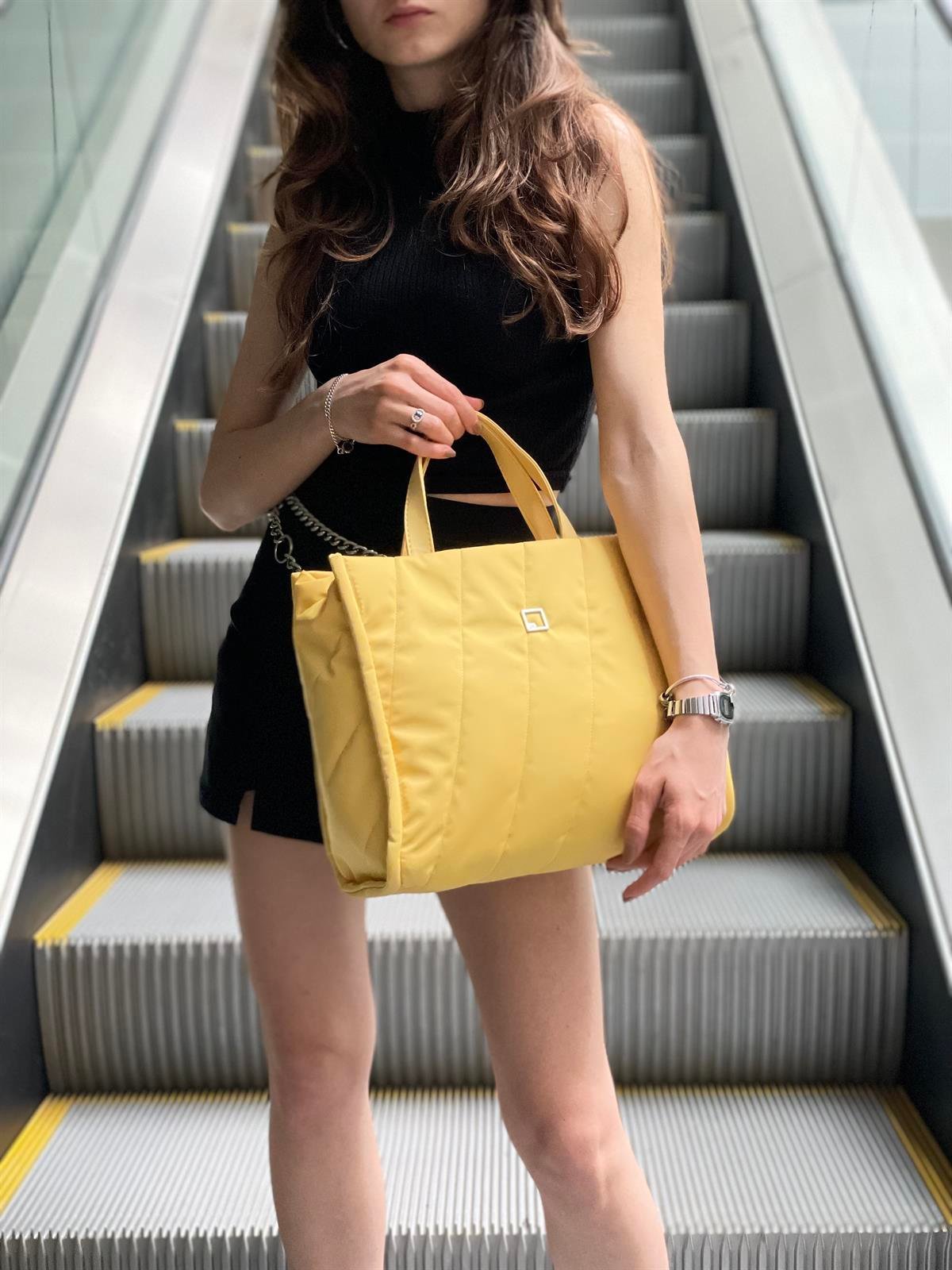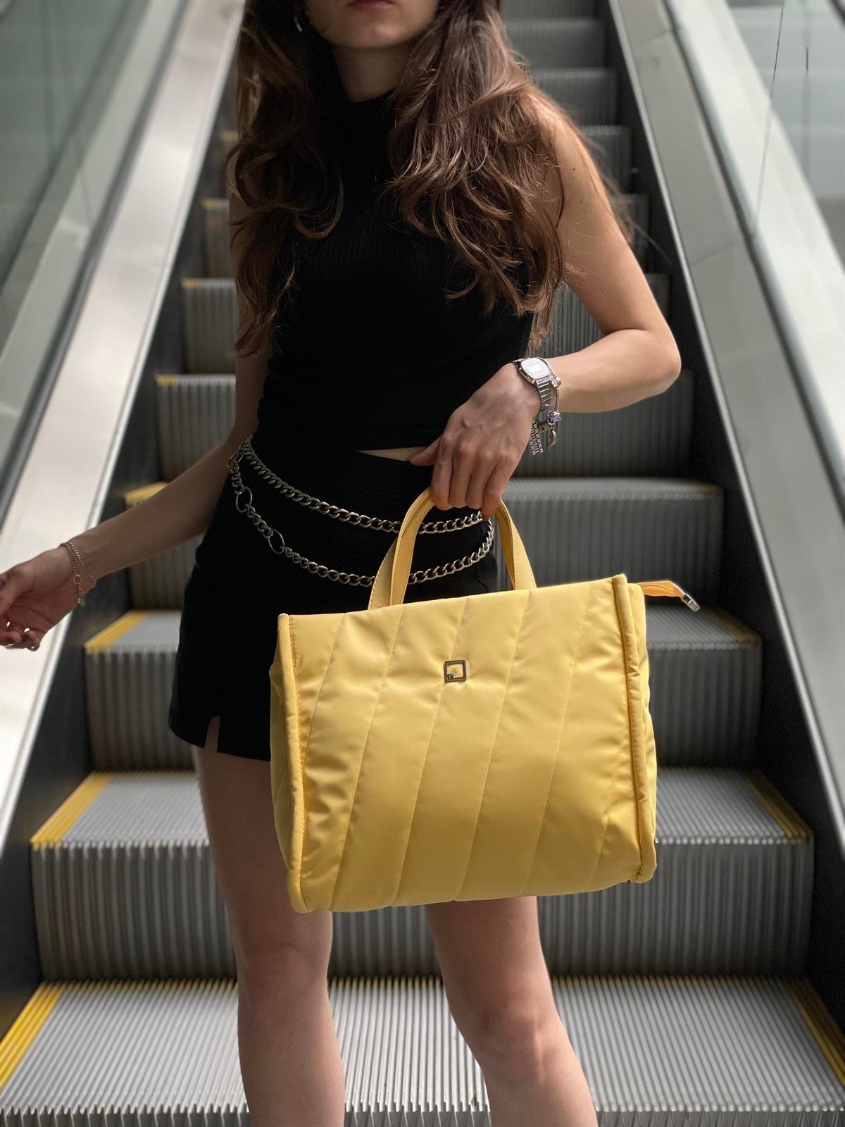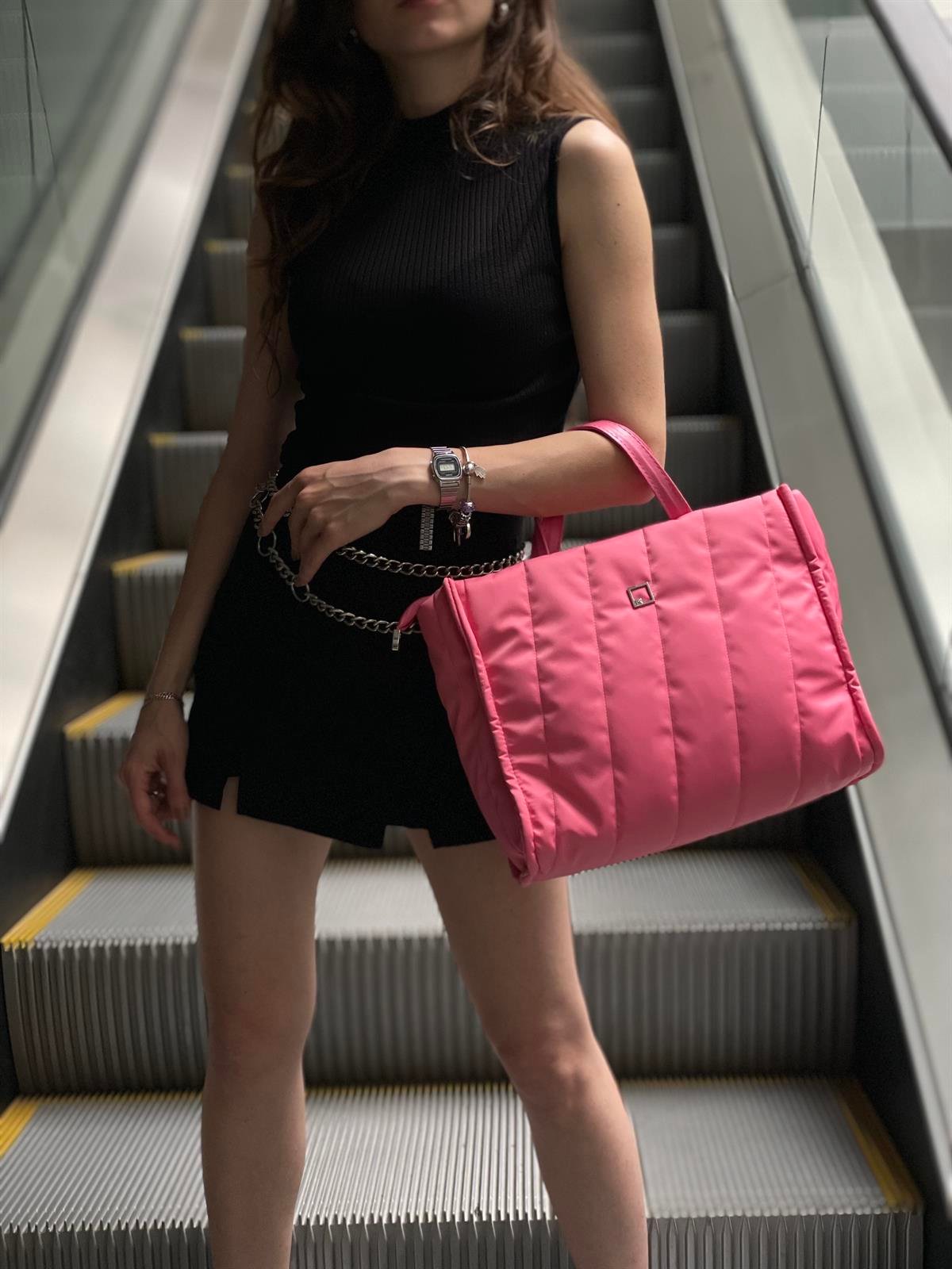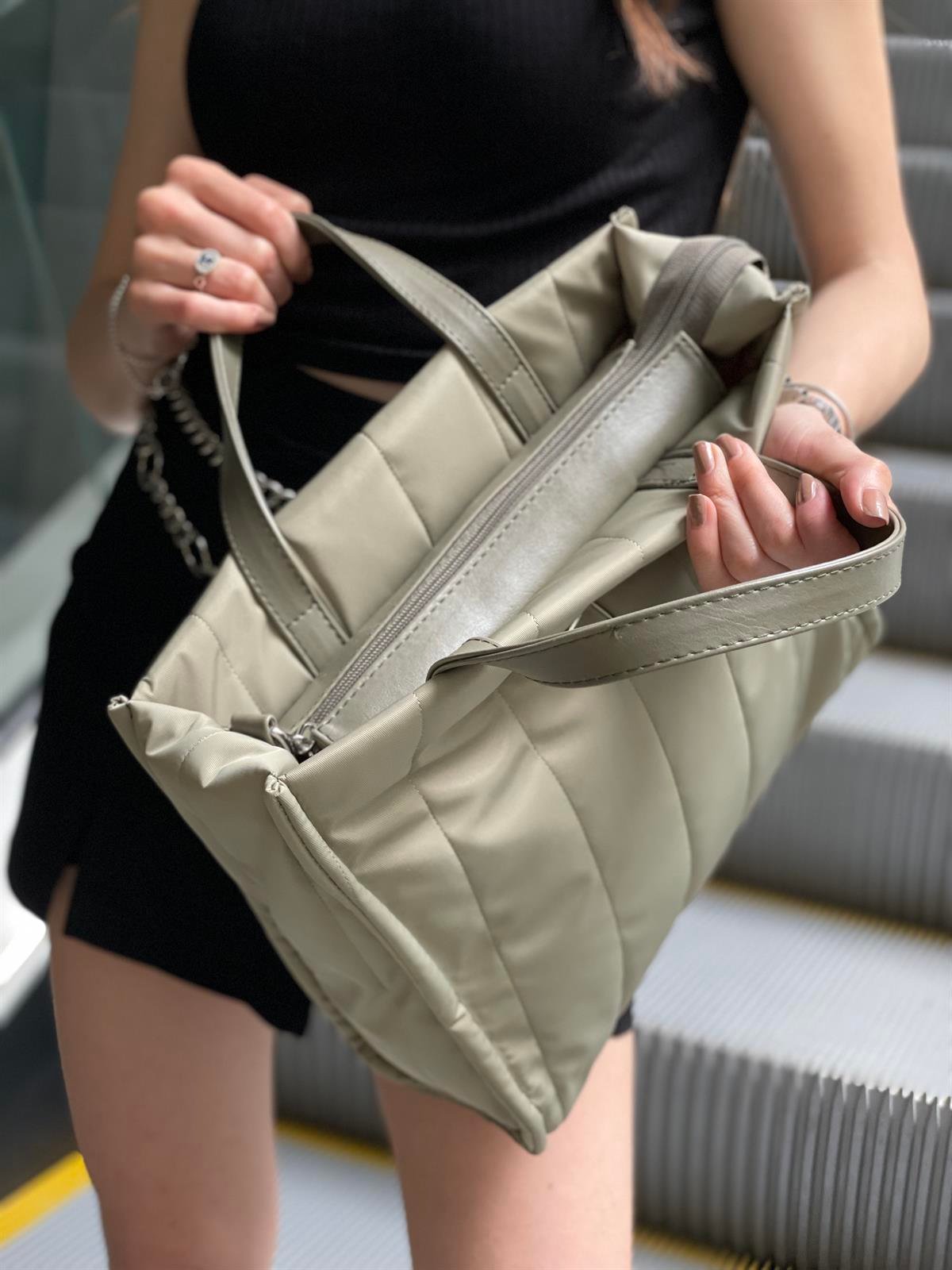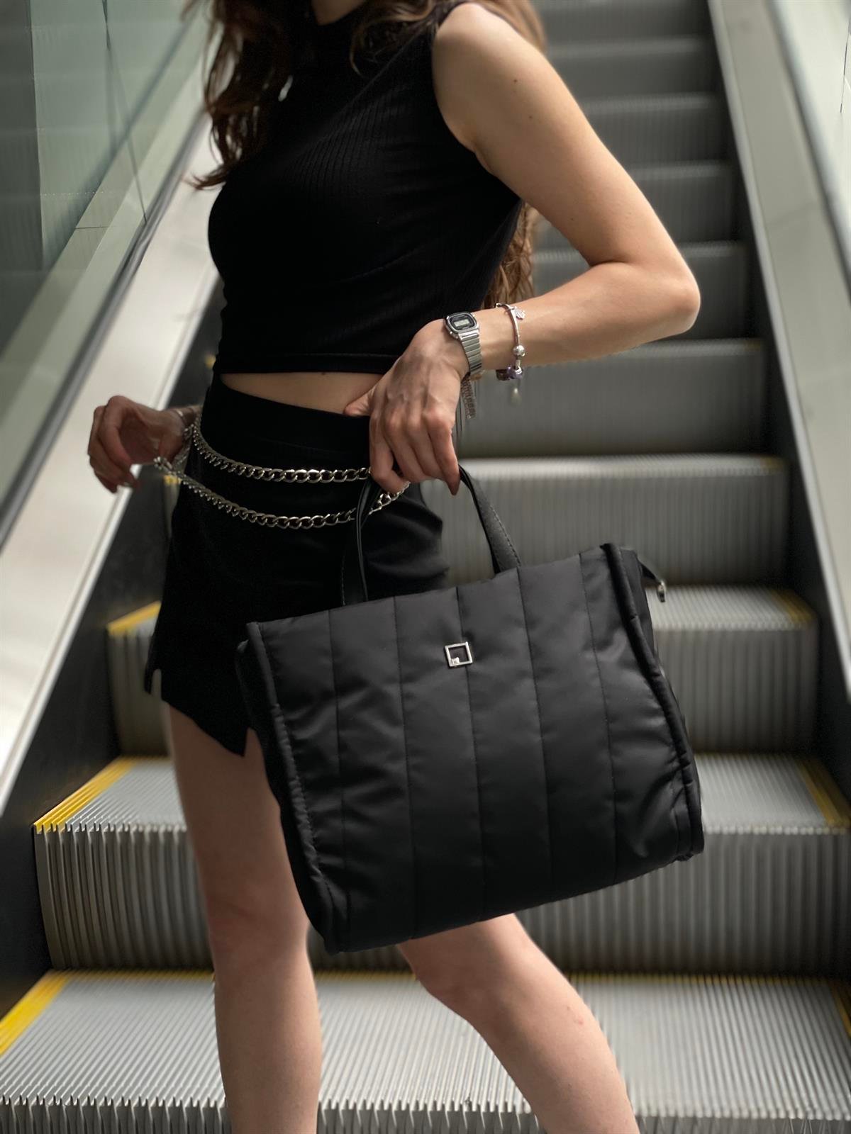 Hem el çantası hem de uzun askısıyla çapraz ve omuz çantası olarak kullanılabilir